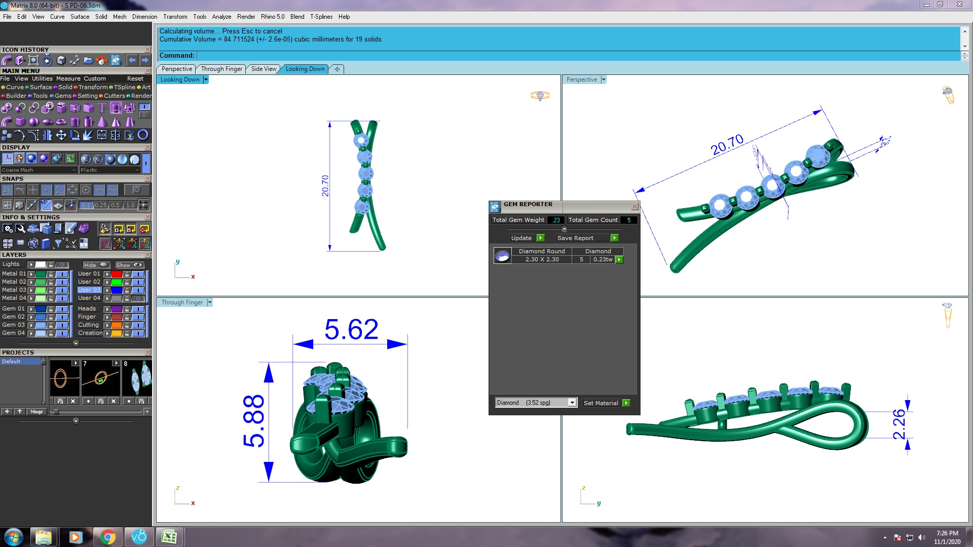 Estimated final gold weight is 1.0639576 (18kt) and diamond weight is 0.23. The design measurements are approximately Length 20.7 mm and Width nan mm, helping you understand the overall size and proportion.